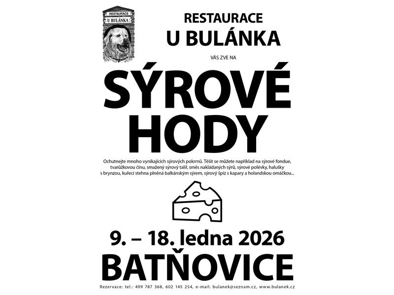 SÝROVÉ HODY 9.1. - 18.1., PONDĚLÍ 19.1. A ÚTERÝ 20.1. ZAVŘENO